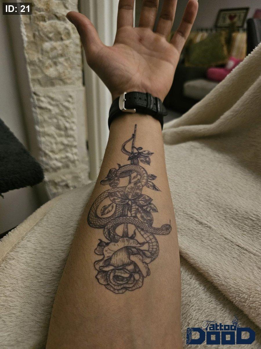 ✅ تاتو يأتي على شكل وردة وأفعى.
